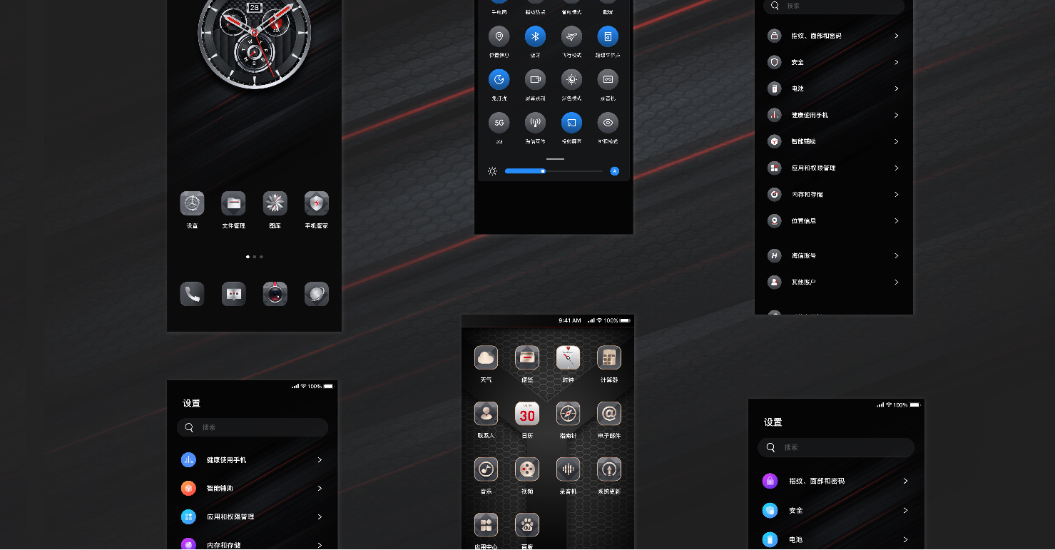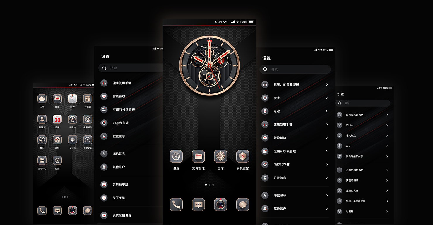 唯可可通過對蘭博基尼的用戶訪談和調(diào)研,在視覺設(shè)計上唯可可設(shè)計團隊開啟了一場商業(yè)設(shè)計與藝術(shù)的融合之旅,一起重新定義視覺風(fēng)格。唯可可通過品牌DNA挖掘為主要設(shè)計元素,配以寫實質(zhì)感的圖標,使UI界面與產(chǎn)品融為一體,達到和諧的體驗效果?,F(xiàn)代輕奢侈與色彩的運用形成了鮮明的對比。常用的高級黑色和高級灰色作為一種表現(xiàn),給人一種高級輕奢的感覺。并將添加亮度的金色色、象牙白色等,為界面呈現(xiàn)一種溫馨的氛圍、時尚典雅的風(fēng)格。